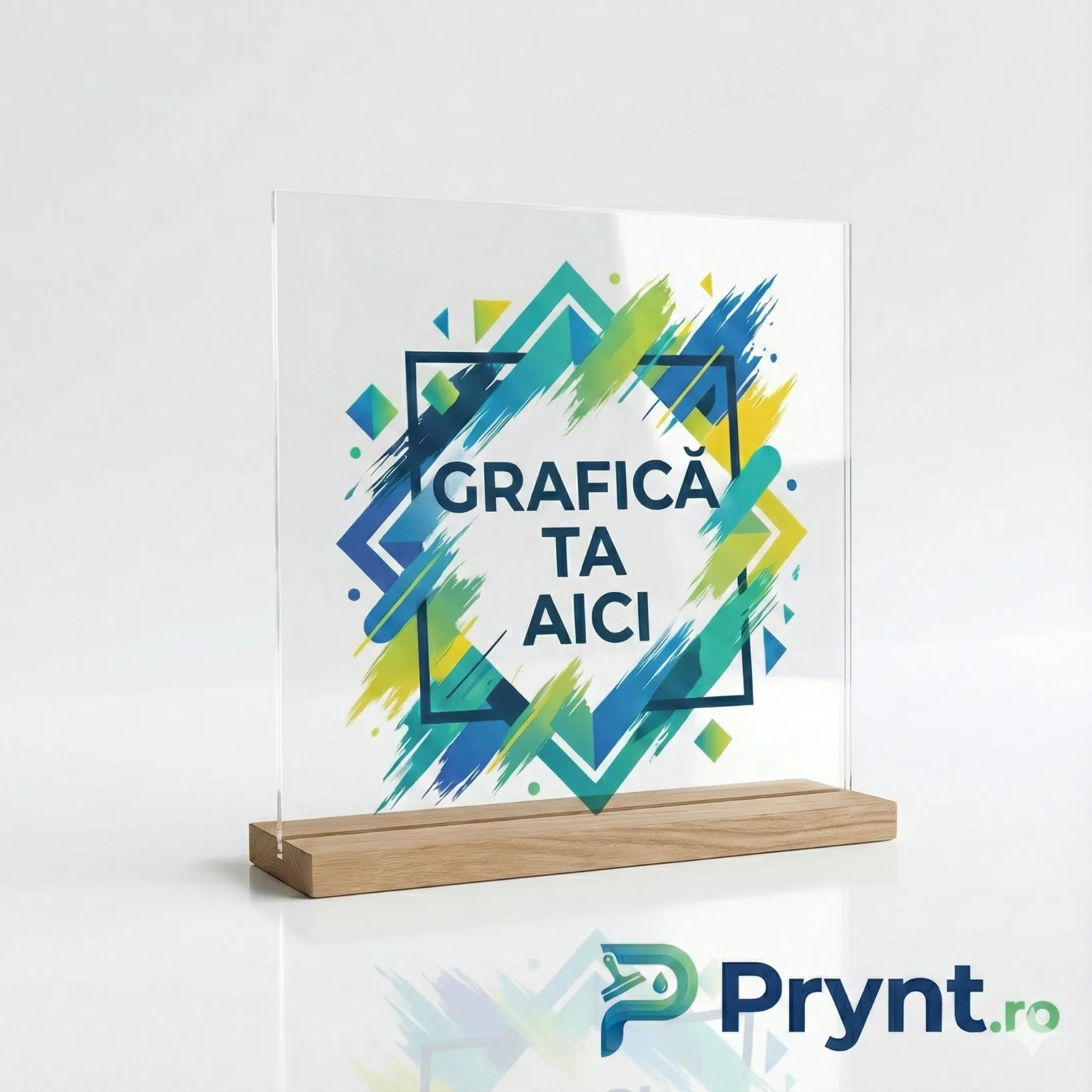 - Plexiglas Transparent: Aspect cristalin, perfect pentru plăcuțe de firmă montate pe distanțieri.